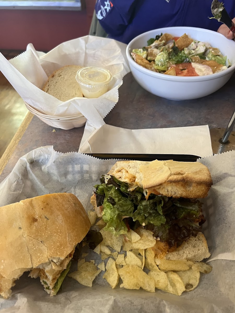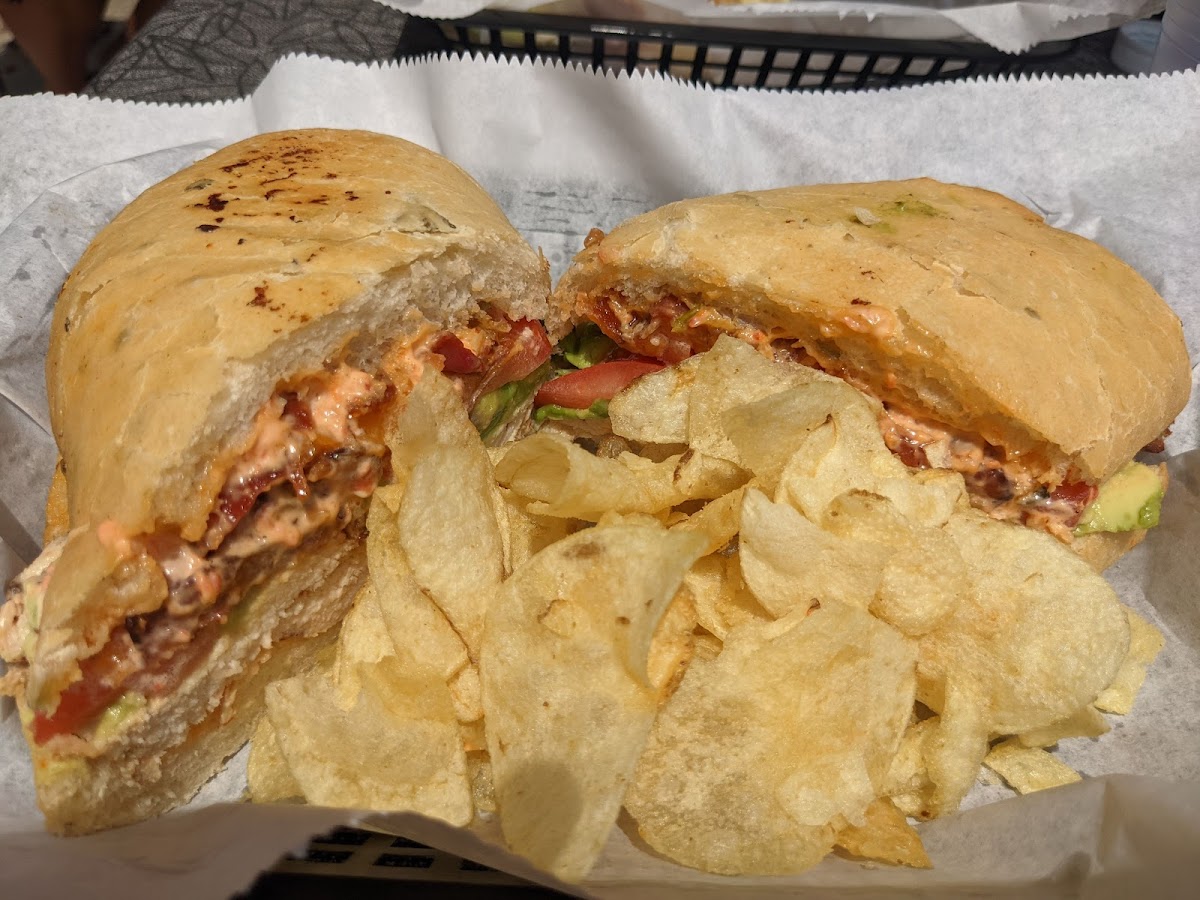 Stopped to grab a quick, late lunch after a long day out. Food ended up taking a lot longer than expected though. I had “The Popular” which immediately called my name. I’ve never heard of tomato bread, but basically it’s an Italian bread with some tomatoes on top. I liked it, and the bread was very fresh and light. Juicy grilled chicken breast throughout with gooey provolone cheese on top. The caramelized onions and bell peppers provided some sweetness as well. While I enjoyed the sandwich, the chips were cold and not salty. With tons of options, I’ll for sure be back and will also try their monster cookie.