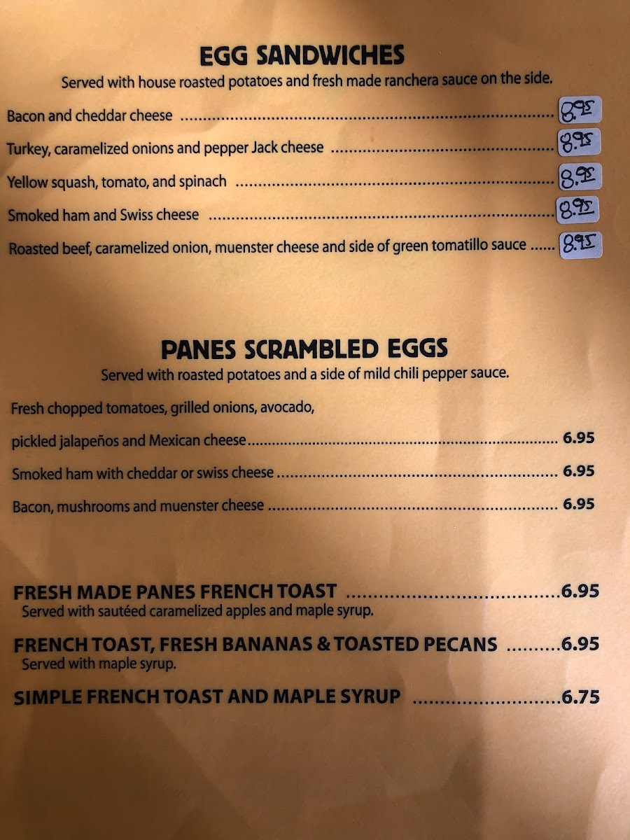 Panes Bread Cafe Menu